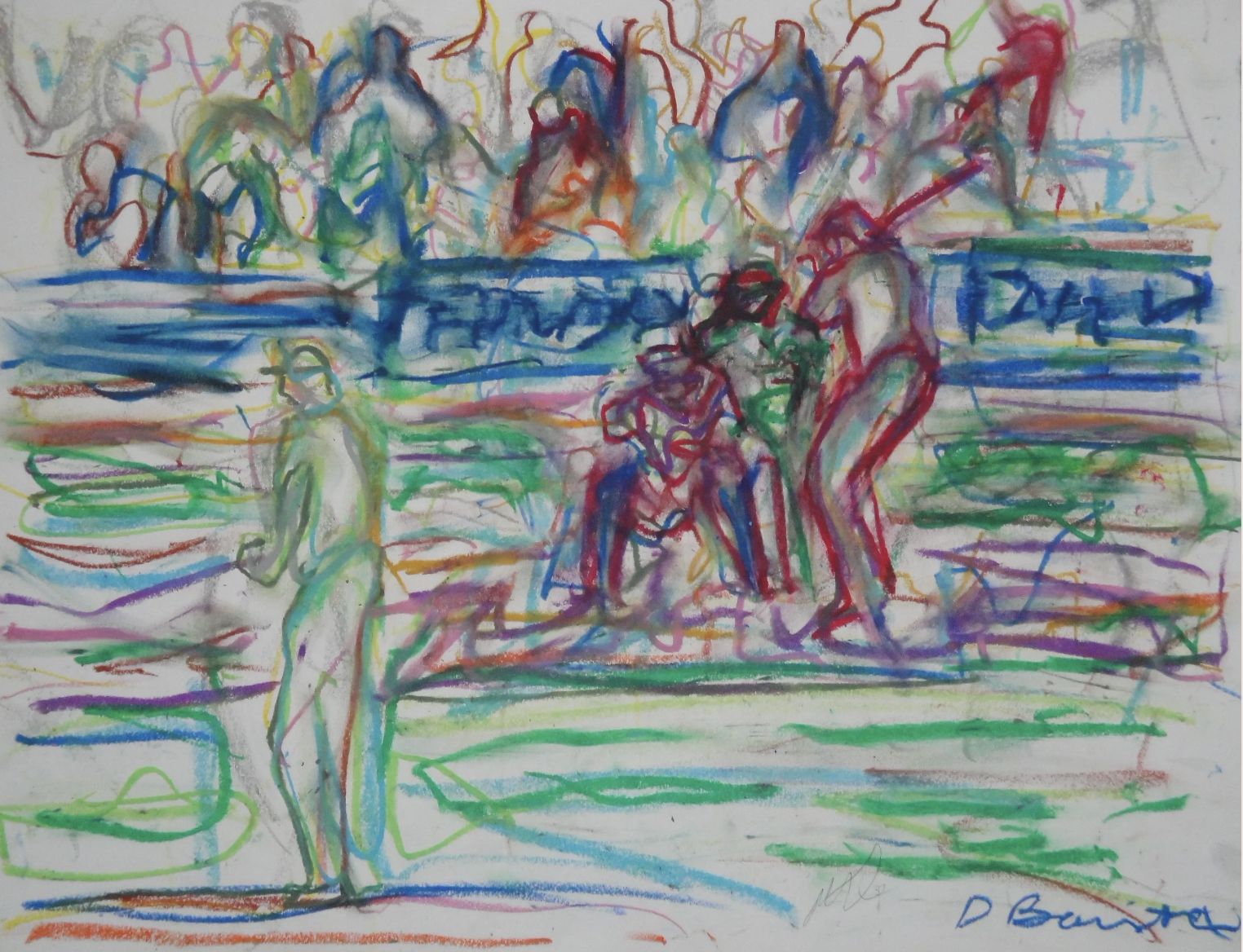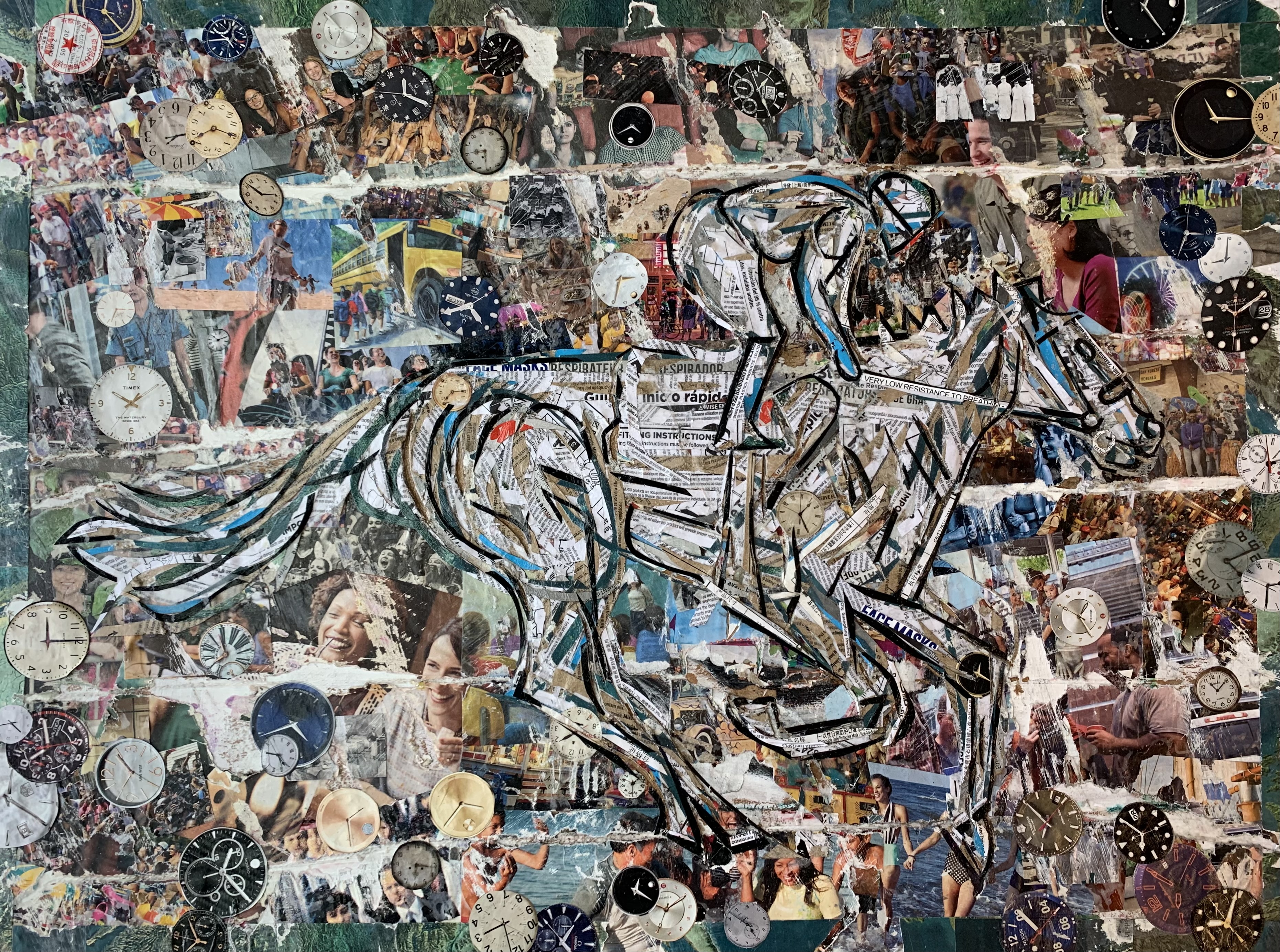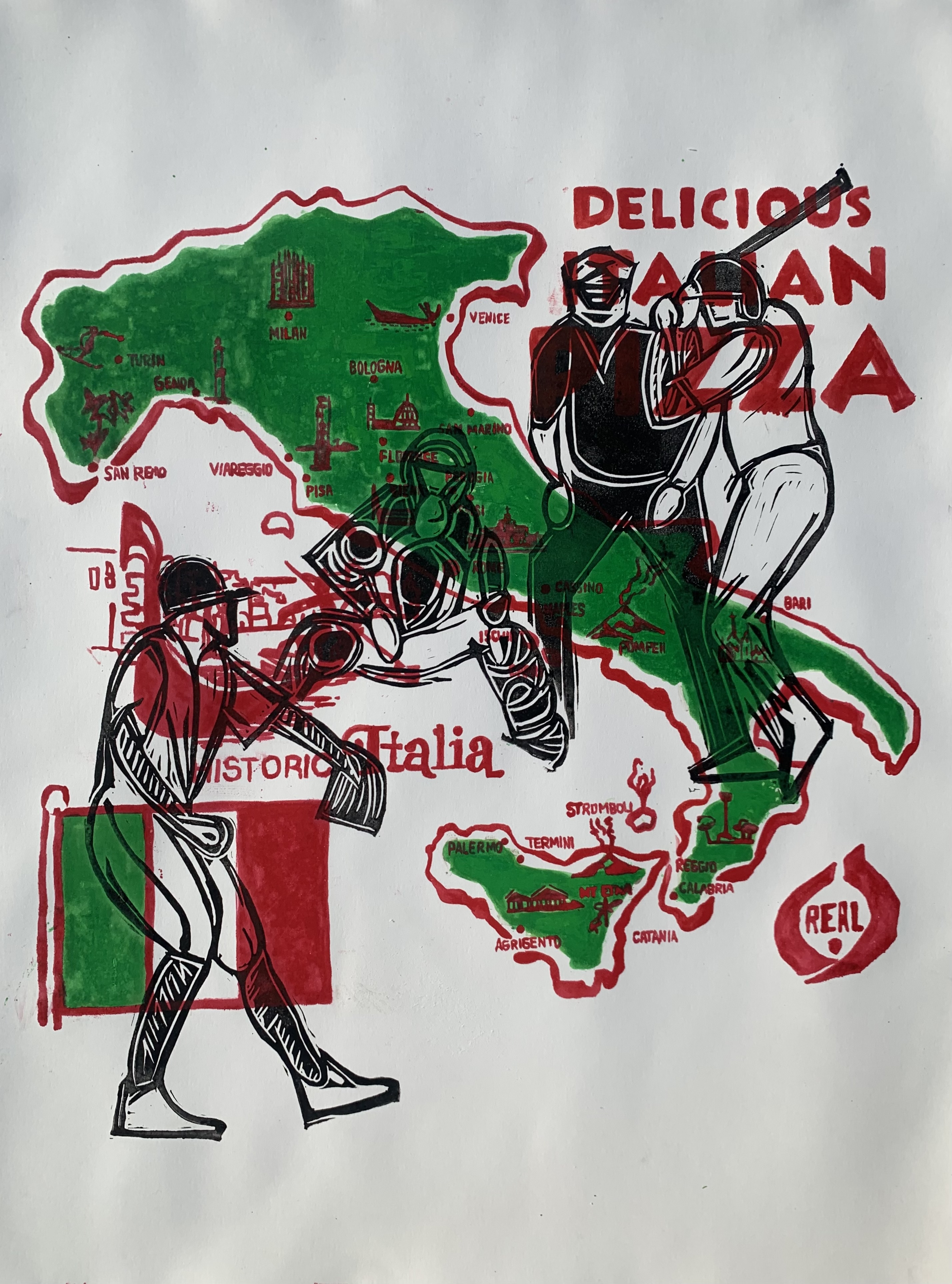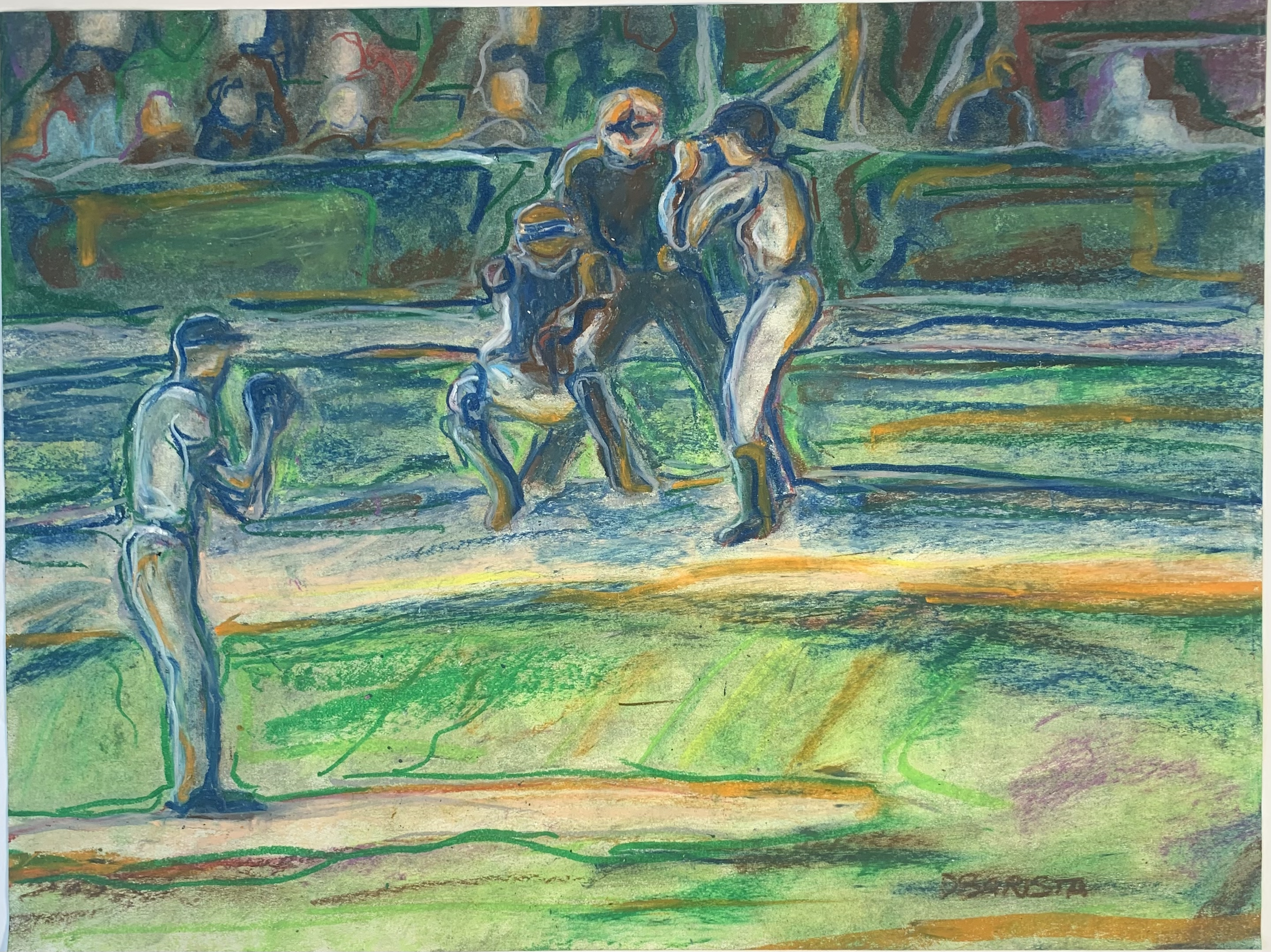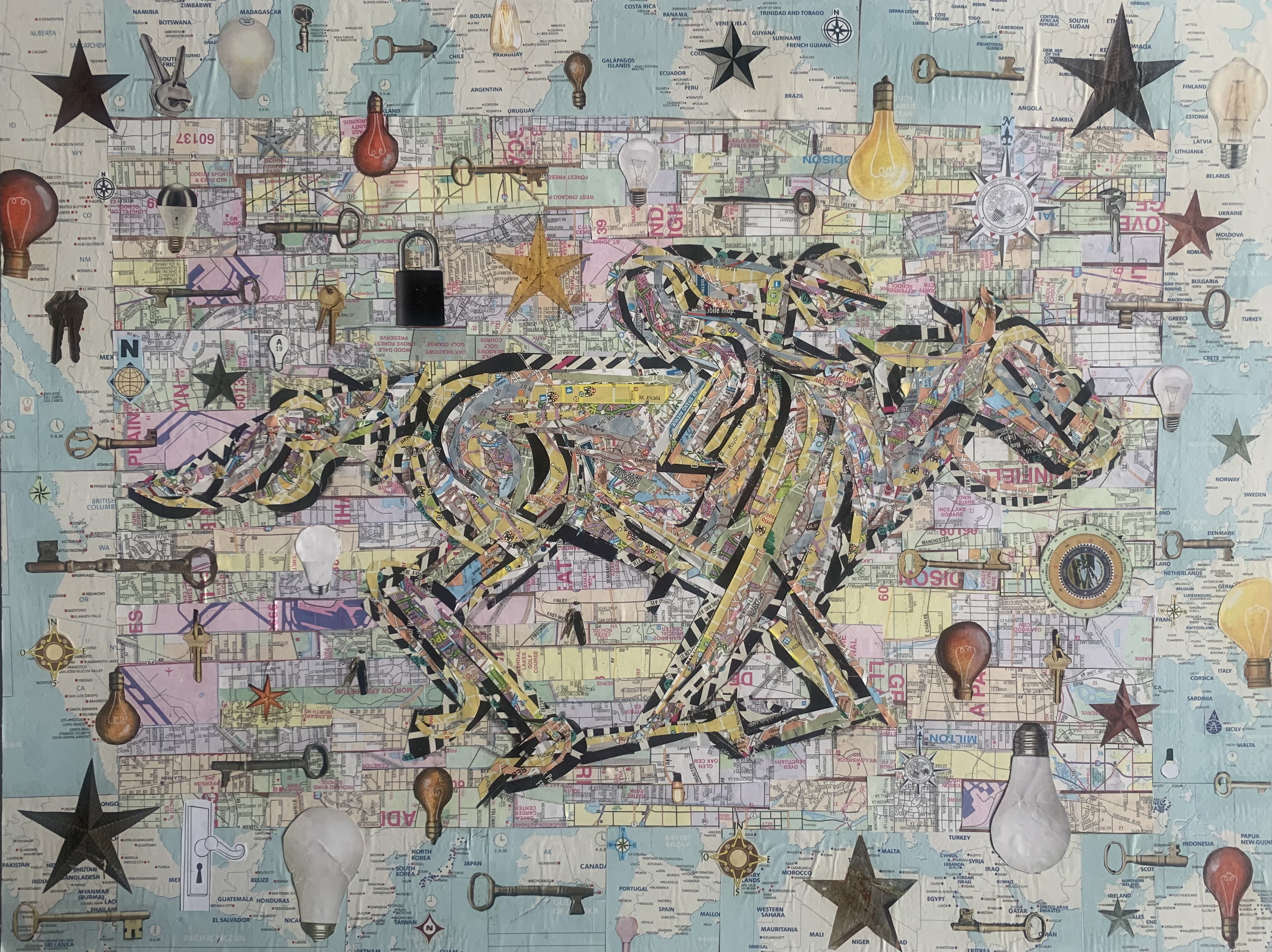 Dry Point Etching and Charcoal on Scorched Paper Mounted to Wood